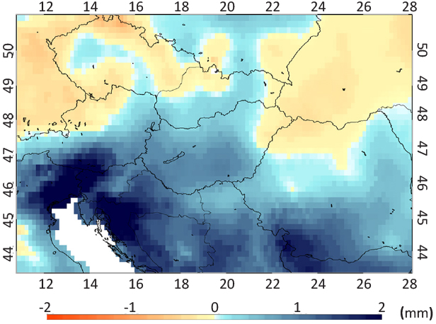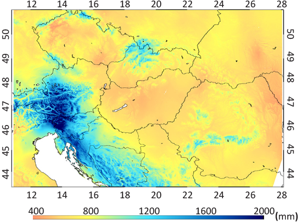 The target area of this study is the broader region of the Carpathian Basin, determined by the coverage of the applied meteorological dataset (see below). Bosnia and Herzegovina, Croatia and Hungary were selected to represent Mediterranean and continental climate as well, with high biodiversity and variability in the meteorological conditions. Results for Czech Republic, Slovakia and Slovenia are presented in the Supplemental Material. The reason behind chosen countries is the spatial domain of the applied meteorological database, covering fully only the selected countries.