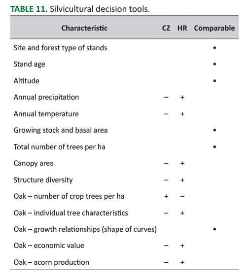 Materials and Methods: In both countries a different silvicultural concept is preferred (CZ: clear-cutting management with artificial regeneration, HR: shelterwood management with natural regeneration). The main research goal was to create a basic decision tool for forest managers and open some questions for future research.
