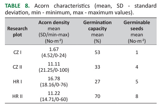 TABLE 8. Acorn characteristics (mean, SD - standard deviation, min - minimum, max - maximum values).