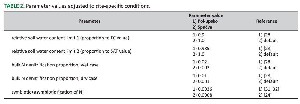 TABLE 2. Parameter values adjusted to site-specific conditions.