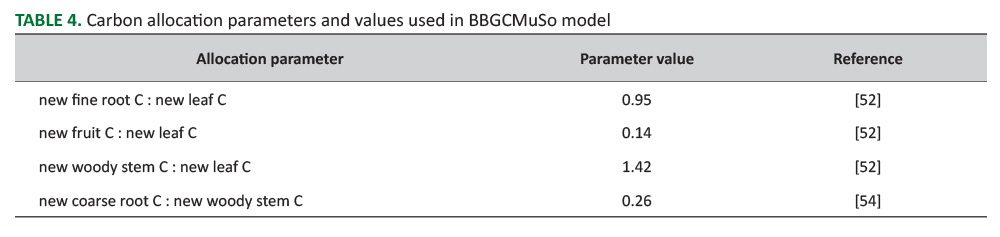 TABLE 4.Carbon allocation parameters and values used in BBGCMuSo model