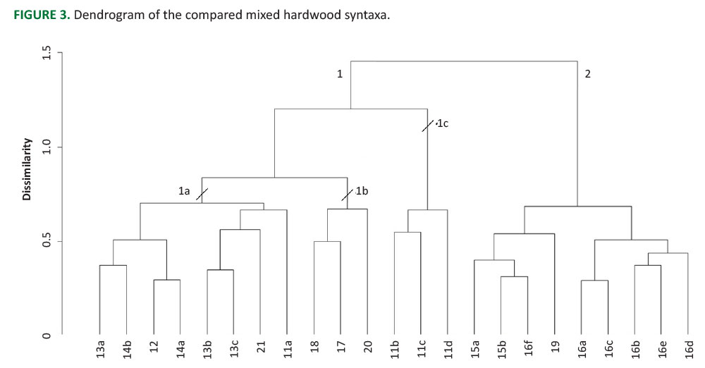 FIGURE 3. Dendrogram of the compared mixed hardwood syntaxa.