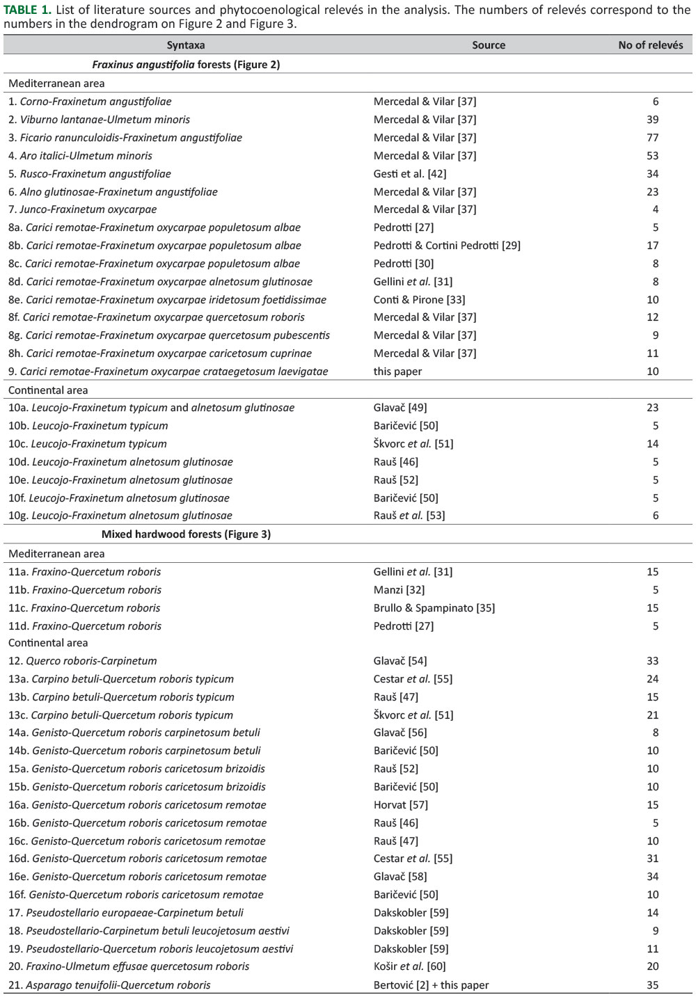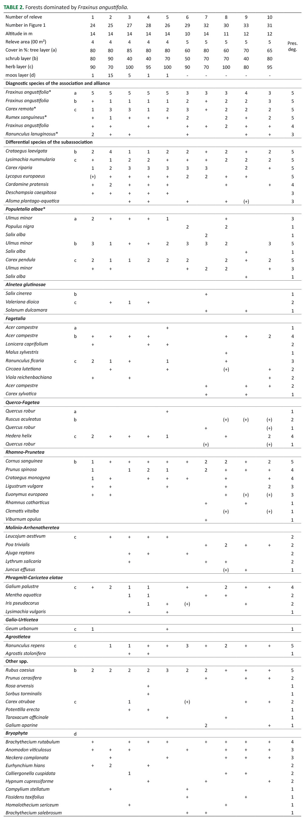 TABLE 2. Forests dominated by Fraxinus angustifolia.